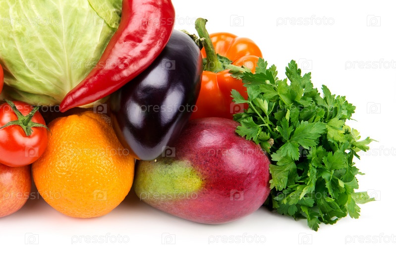 Набор фруктов и овощей, изолированных на белом фоне