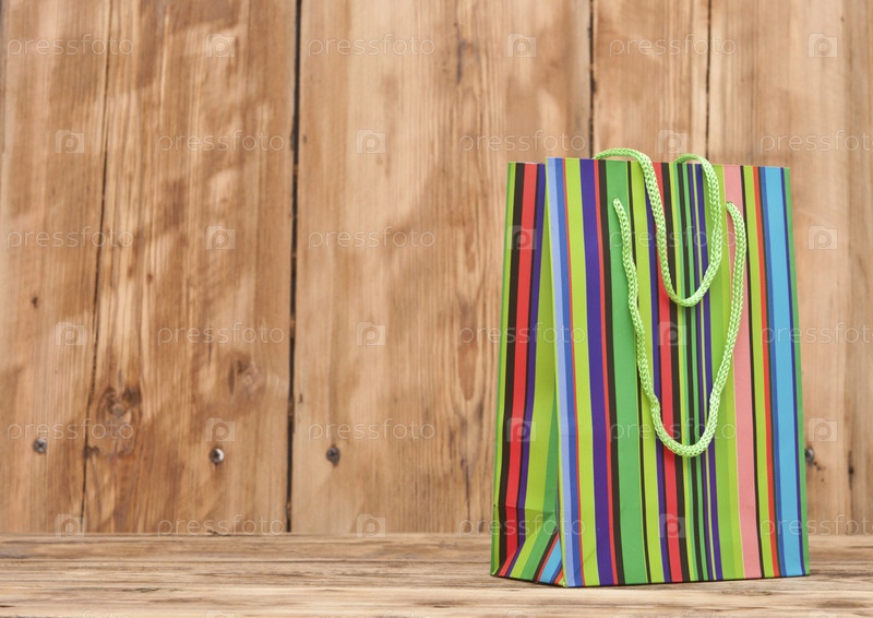 Красочный пакет на старом деревянном столе