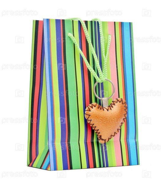 Яркий полосатый пакет с коричневым сердцем