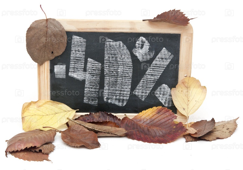 Осенняя скидка сорок процентов, написанная на доске