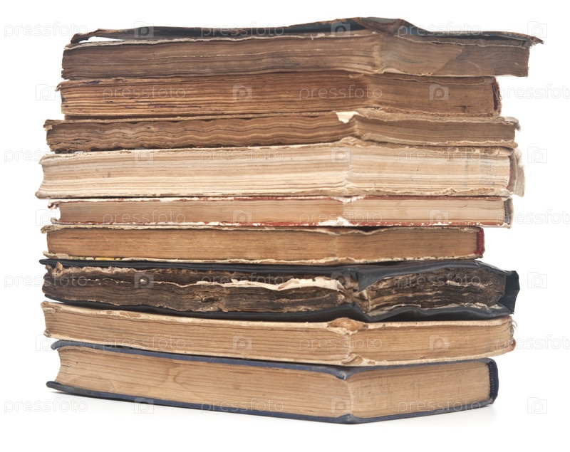 Стопка старых книг на белом фоне