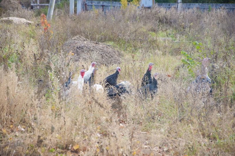 Индюки гуляют на ферме