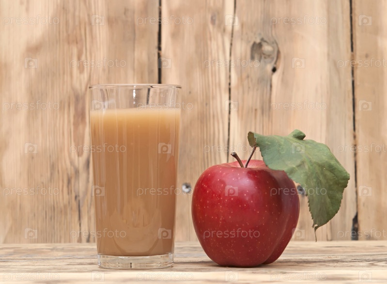 Яблоко с яблочным соком на древесине