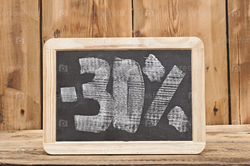 Тридцатипроцентная скидка, написанная на доске