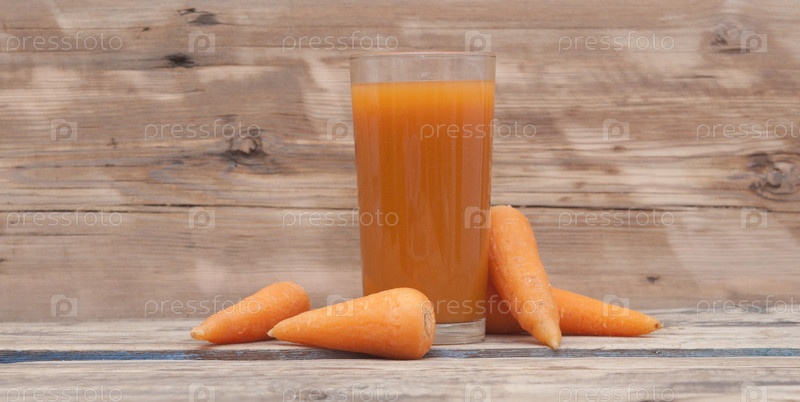 Стакан морковного сока и морковь на салфетке