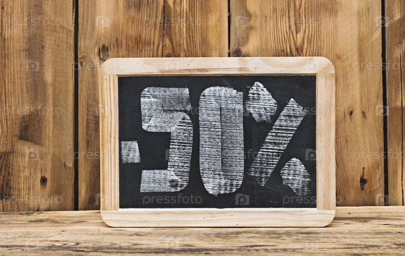 Скидка 50%, написанная на доске