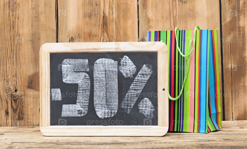 Скидка 50%, написанная на доске