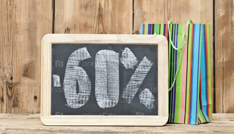Скидка 60%, написанная на доске