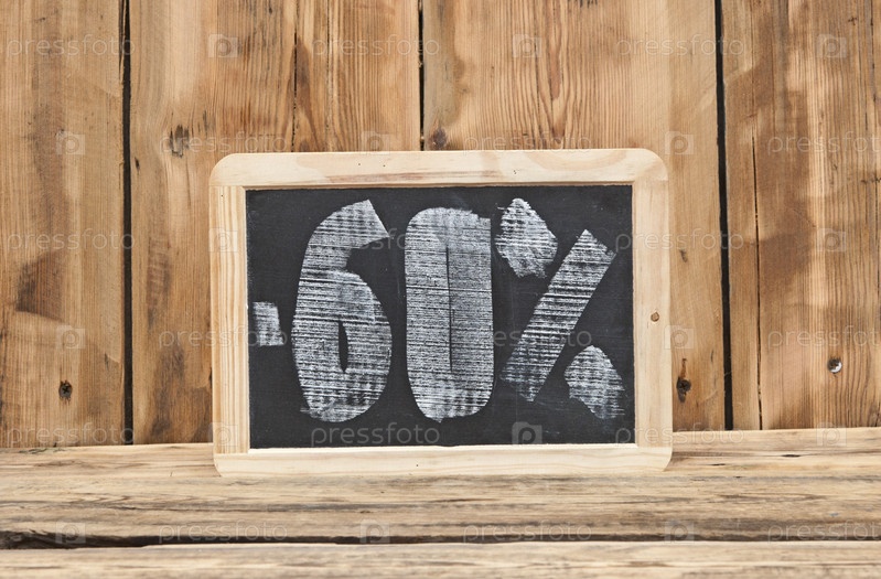 Скидка 60%, написано на доске
