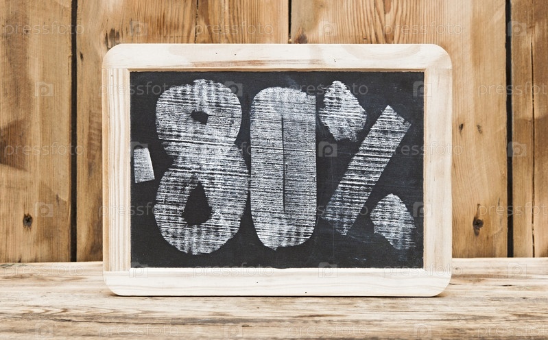 Скидка 80%, надпись на доске