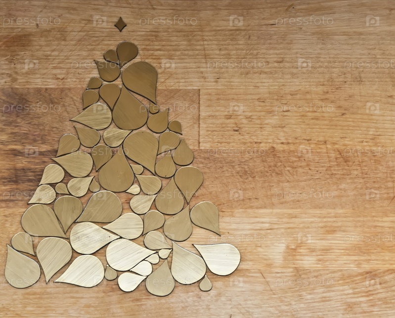 Рождественская елка из золотых капель на фоне дерева