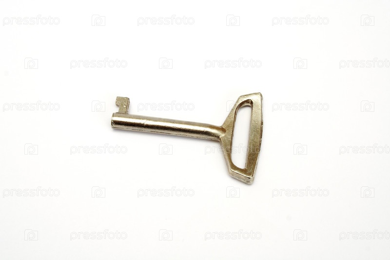 Серебряный старинный ключ на белом фоне