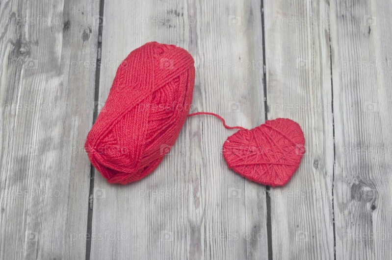 Красное вязаное сердце на древесине