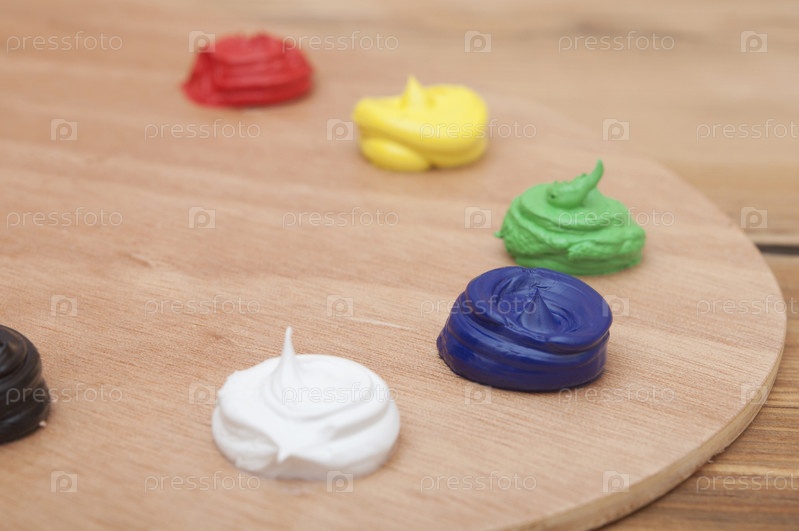 Деревянная палитра с красками на древесине
