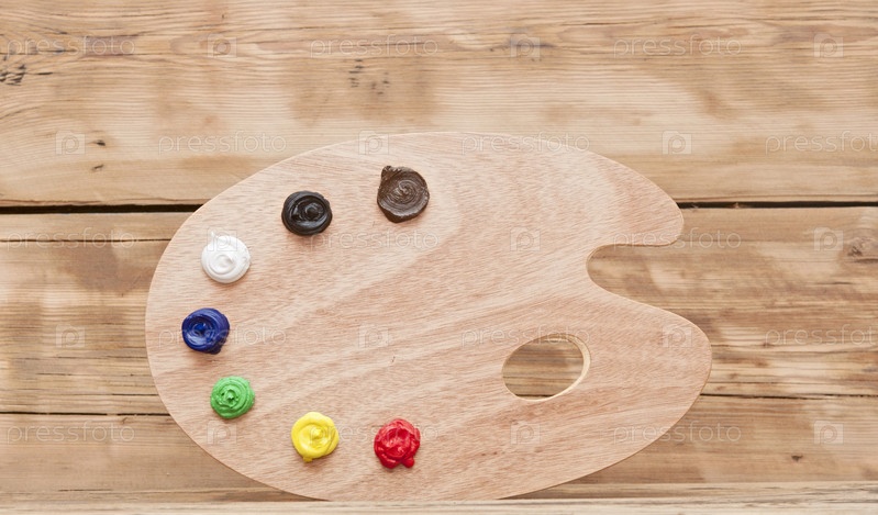Деревянная палитра с красками на древесине