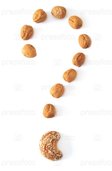 Вопросительный знак из орехов на белом фоне