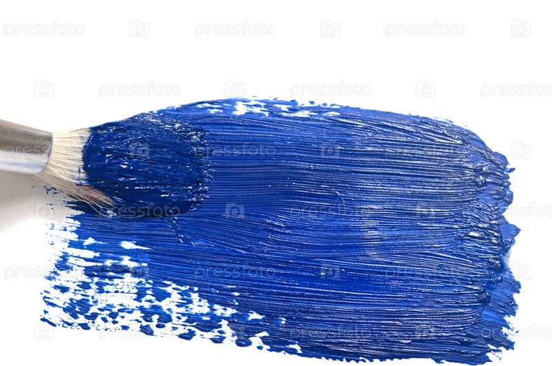 Кисть с синей краской на белом фоне