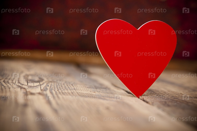 Красное сердце на старом деревянном фоне