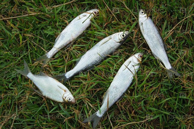Рыба, пойманная в реке, лежит на траве