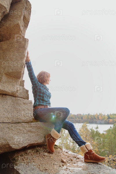 Девушка на скале в контровом свете