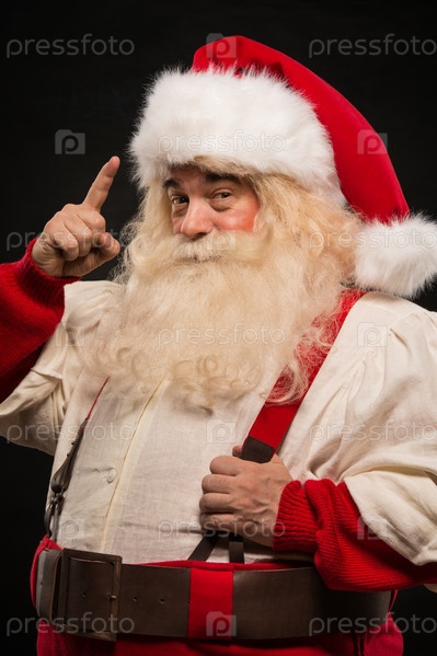 Санта-Клаус показывает жестом, что у него есть свежая идея