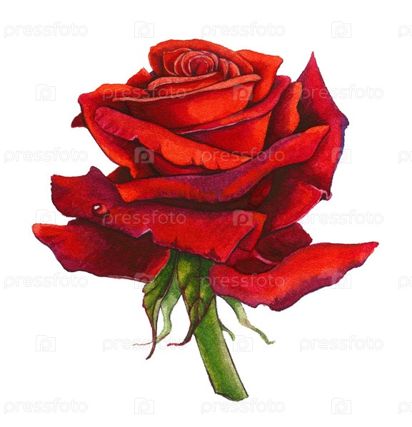 Красная роза на белом фоне, выполненная акварельными красками