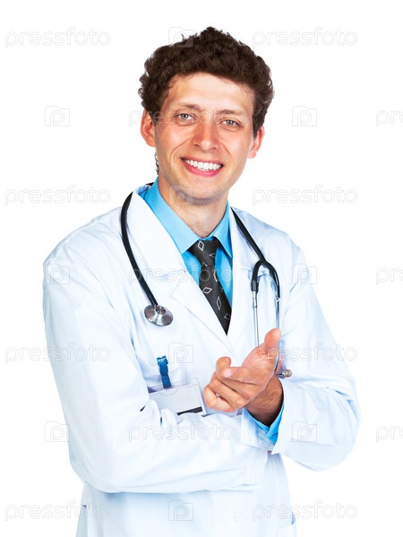 Портрет улыбающегося врача на белом фоне
