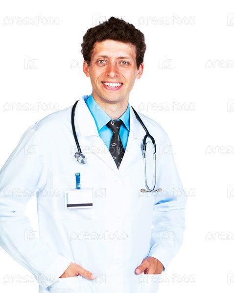 Портрет улыбающегося врача на белом фоне