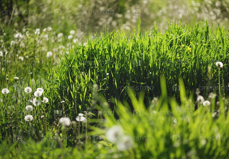 Одуванчики и зеленая трава