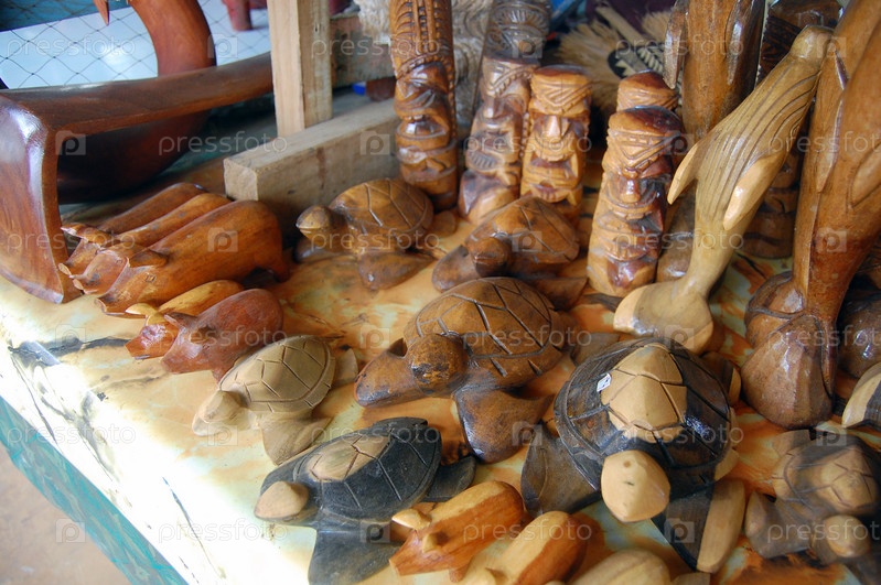 Сувениры из древесины на рынке в Южной части Тихого океана
