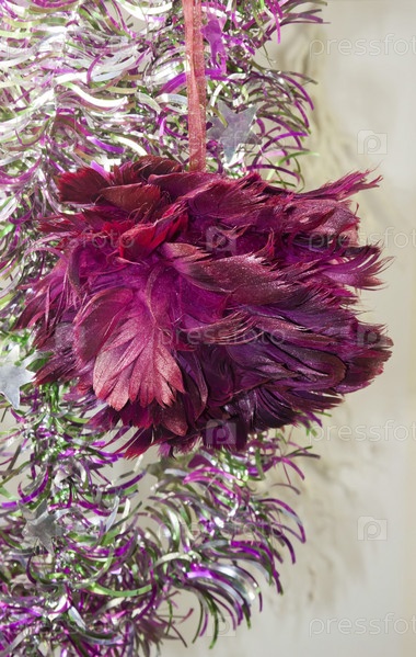 Бордовая висящая новогодняя игрушка крупным планом