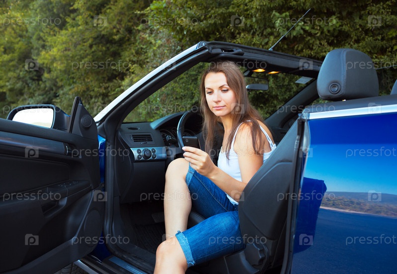 Европейская женщина в кабриолете