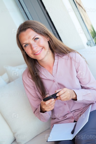 Бизнес-леди с телефоном и ежедневником