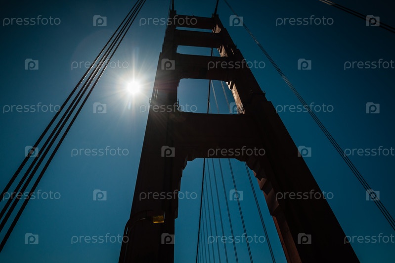 Мост Золотые ворота и солнце в Сан-Франциско, Калифорния, США