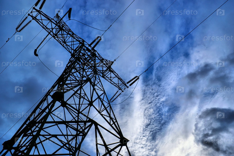 Линии электропередач на фоне голубого неба