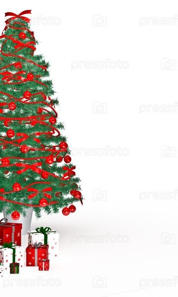Подарки под елкой на белом фоне