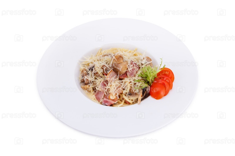Спагетти с беконом и грибами