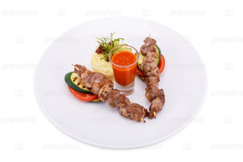 Приготовленное на гриле мясо и овощи