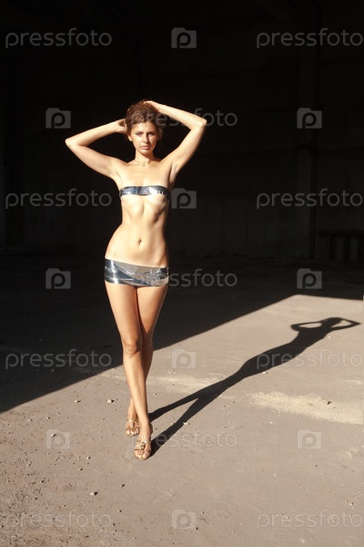 Красивая девушка в серебряной пленке