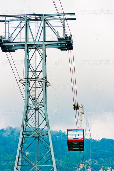 Промежуточная опора и канатная дорога на горе Тахталы