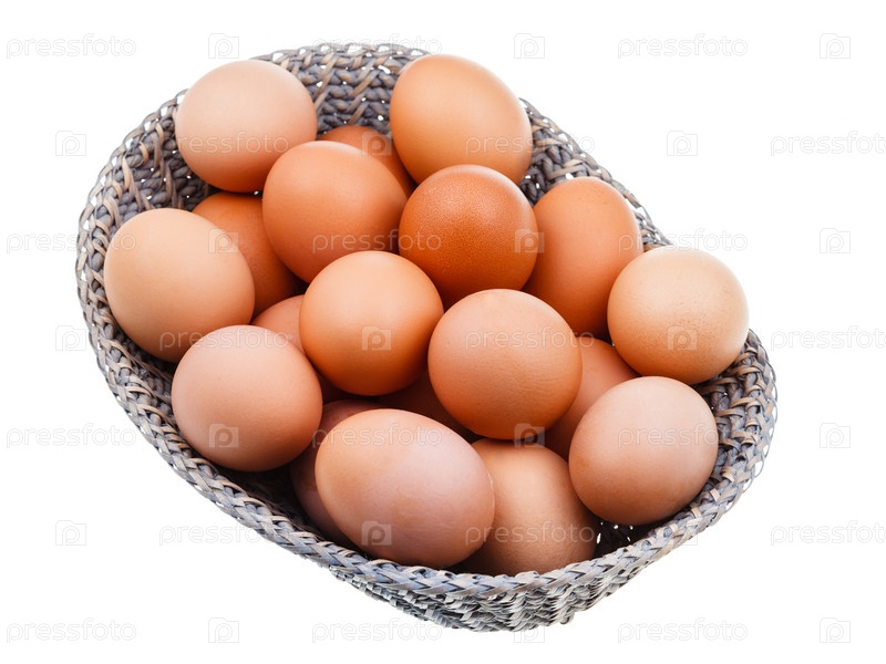 Свежие куриные яйца в плетеной корзине