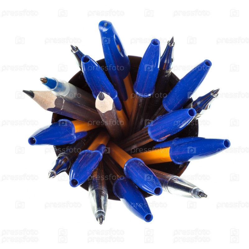 Несколько ручек и карандашей, вид сверху