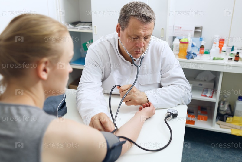 Врач измеряет давление крови