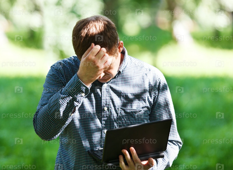 Мужчина среднего возраста с ноутбуком
