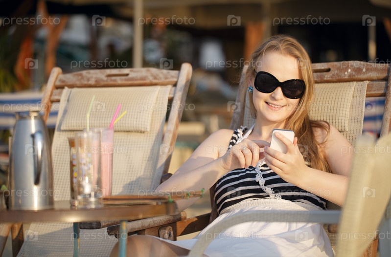 Женщина отправляет смс