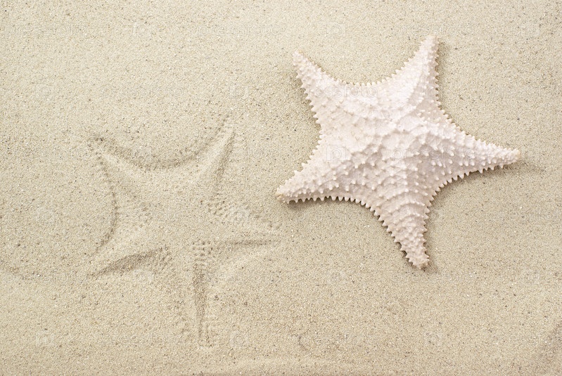 Морская звезда и ее отпечаток на песке