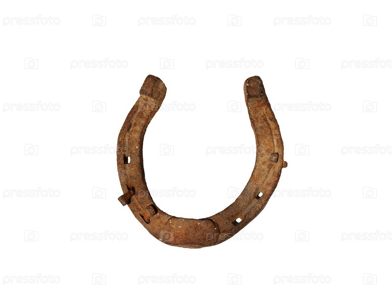 Старая ржавая подкова на белом фоне