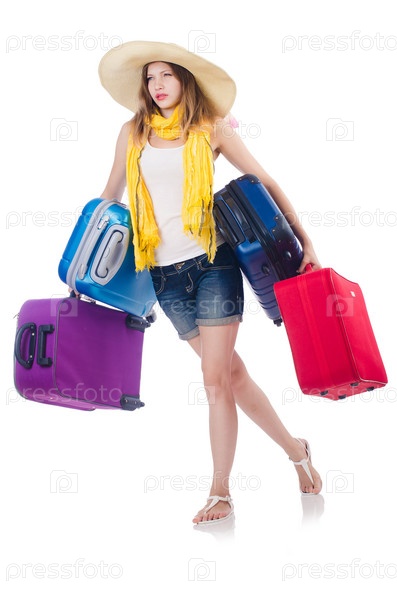 Женщина собирается на летние каникулы, изолированная на белом