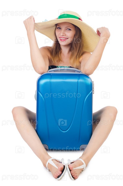 Женщина собирается на летние каникулы, изолированная на белом