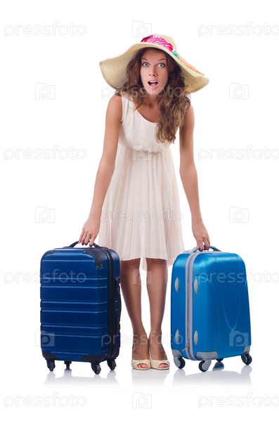 Женщина собирается на летние каникулы, изолированная на белом фоне